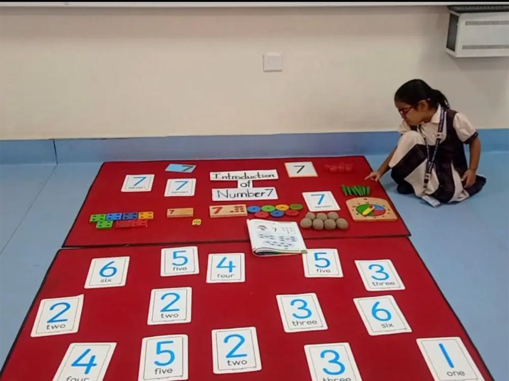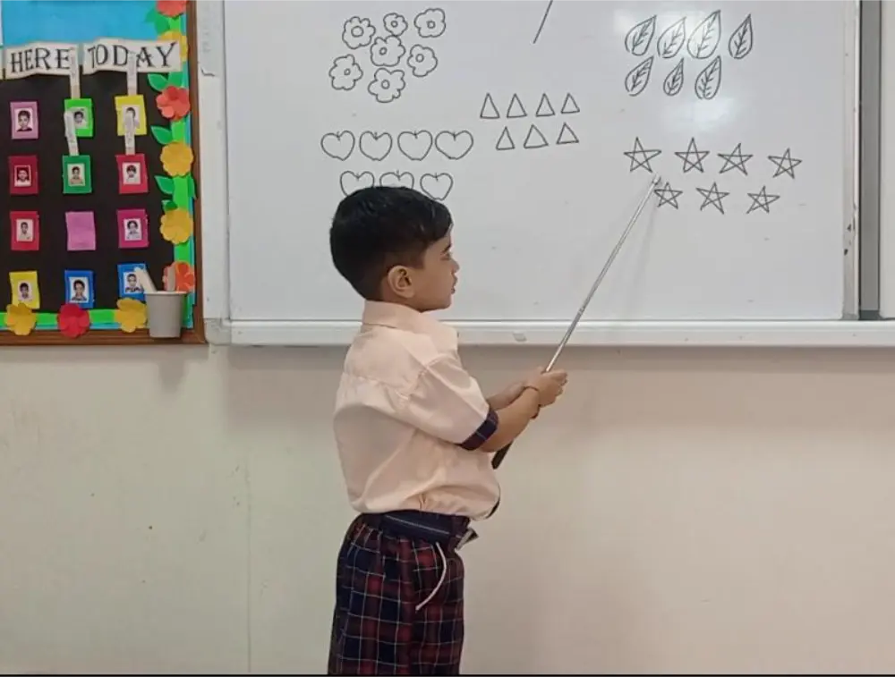 In our Nursery class at Imperial Heritage School, children had a delightful introduction to the number 7 through engaging activities. They started by counting pictures of objects on the board, visually connecting the number with real-life items. Then, they explored counting blocks and toys, reinforcing their understanding with hands-on fun. The kids also practiced writing the number 7 on slates, building fine motor skills while familiarizing themselves with the shape of the number. This interactive approach made learning both fun and meaningful, ensuring every child grasped the concept of 7 in visual and practical contexts.