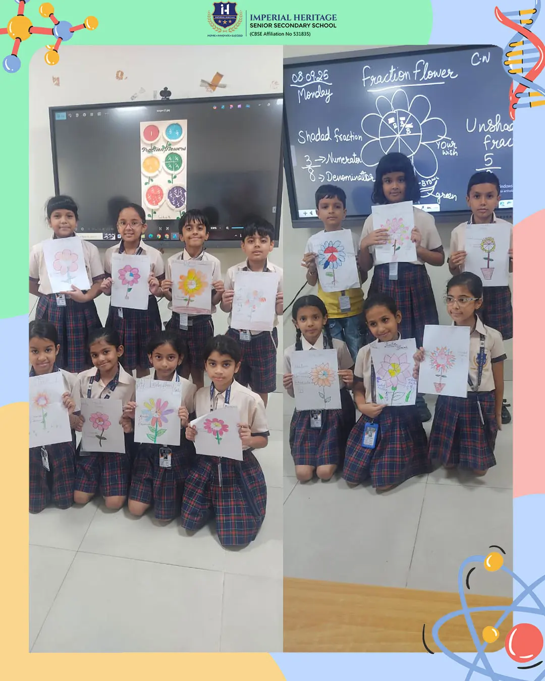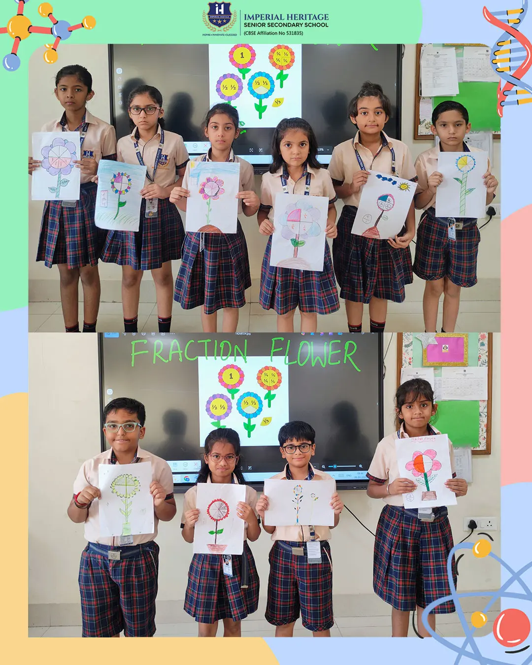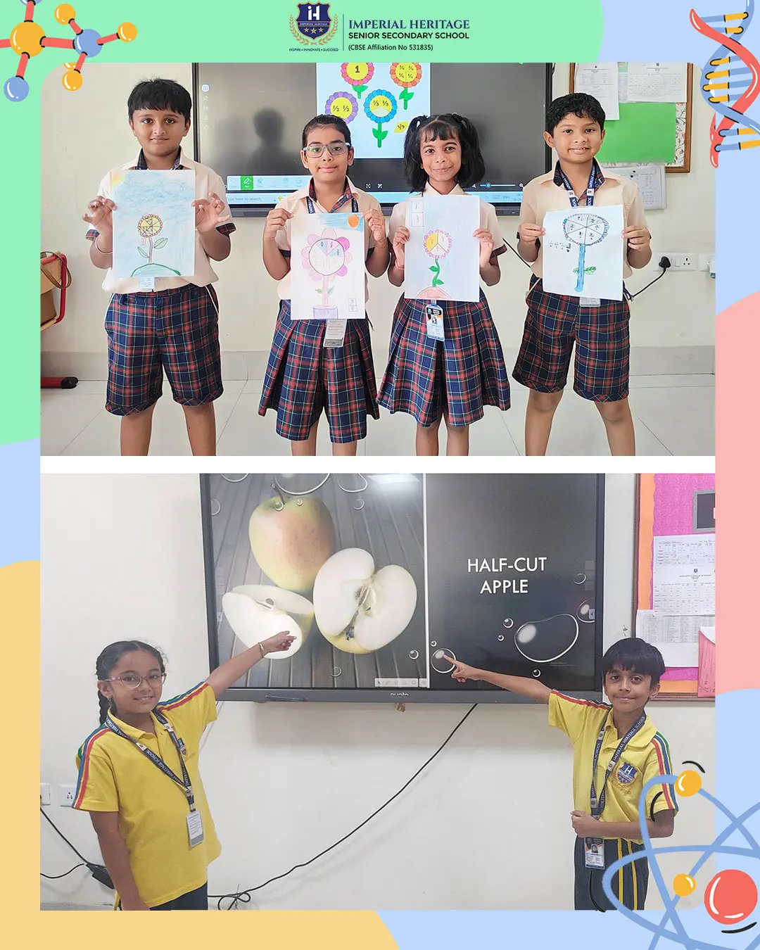 Our young learners enjoyed discovering the world of fractions through two exciting activities. In the first activity, children created a beautiful “Fraction Flower” where each petal represented a part of a whole. This hands-on task not only boosted their creativity but also helped them clearly understand how fractions represent equal parts.
