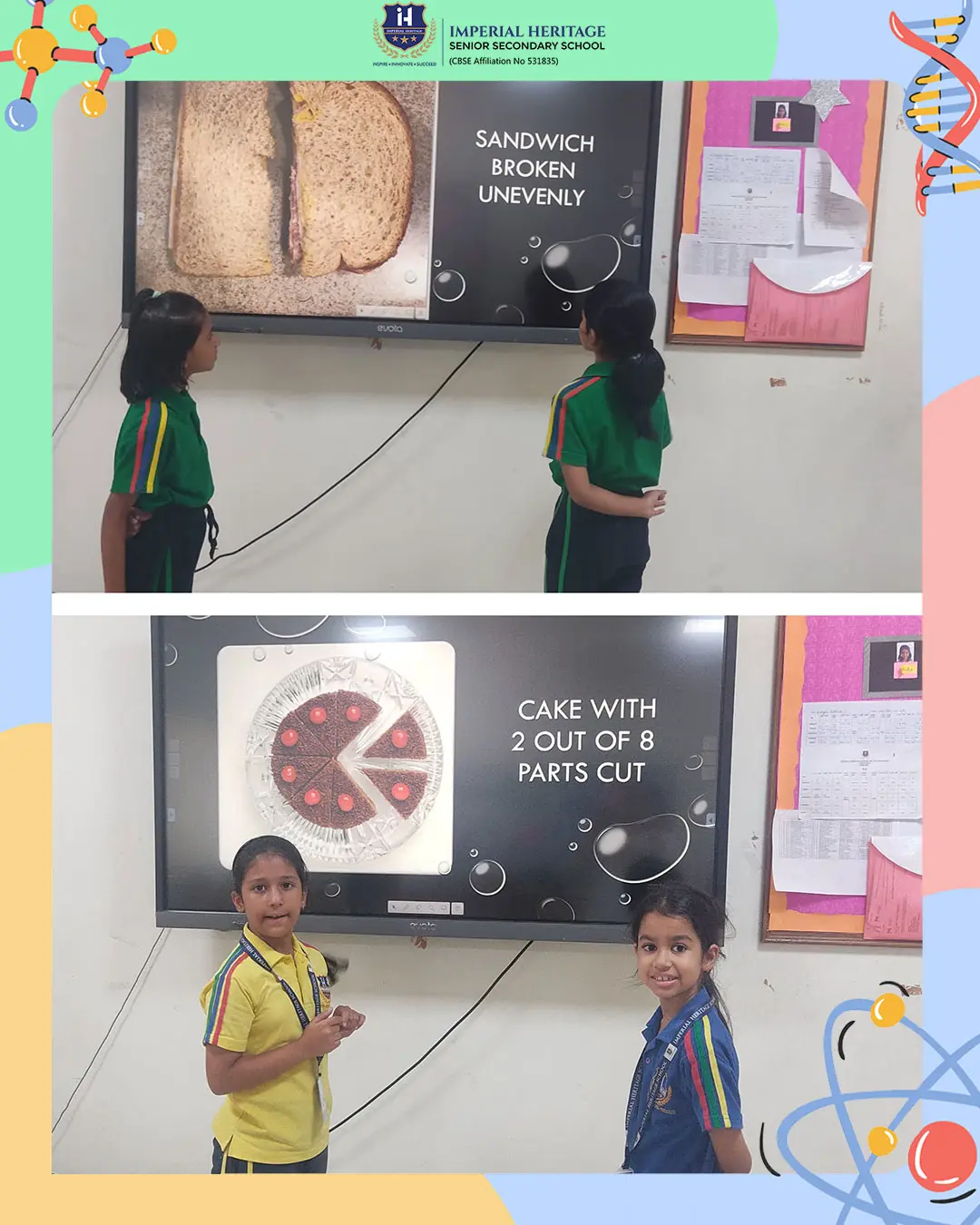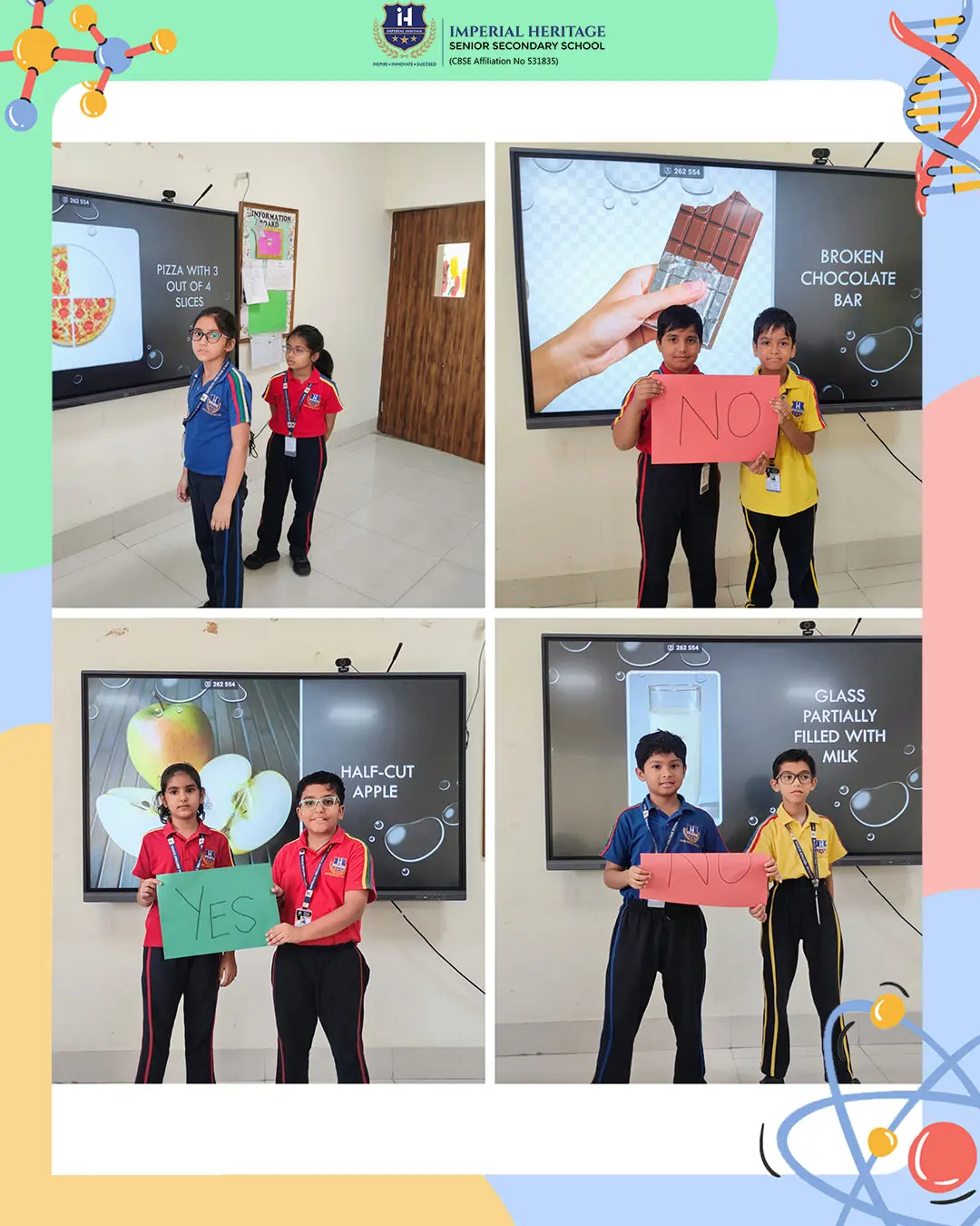 In the second activity, students engaged with an interactive PPT quiz. They looked at different slides and enthusiastically answered whether the picture shown was a fraction or not. This activity encouraged quick thinking and sharpened their ability to recognize fractions in everyday situations.