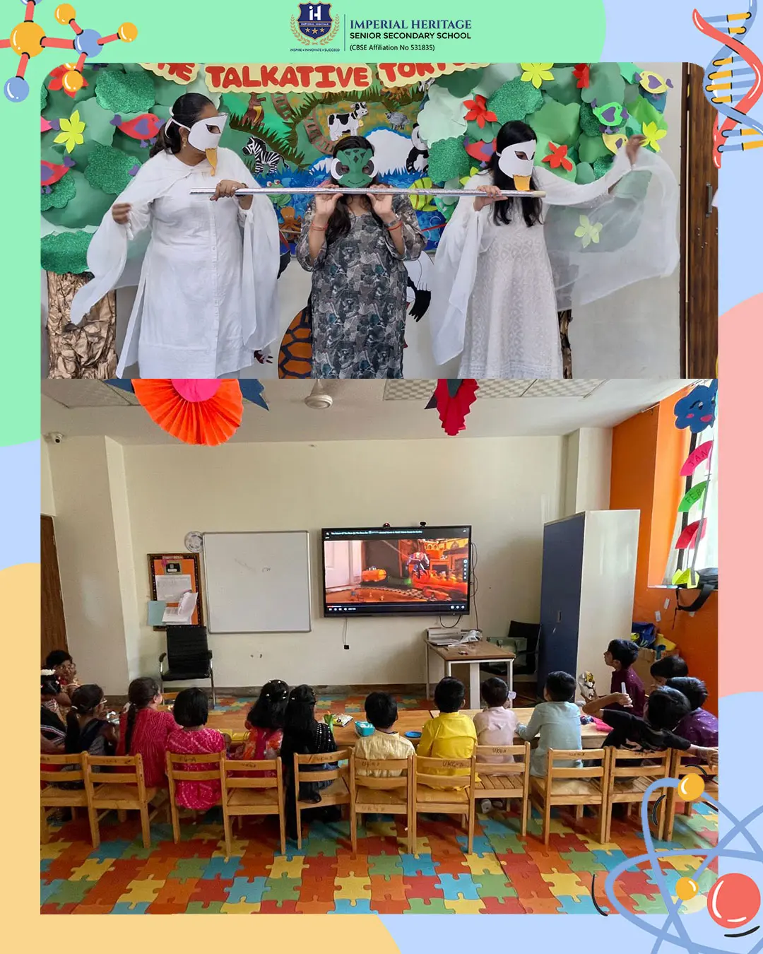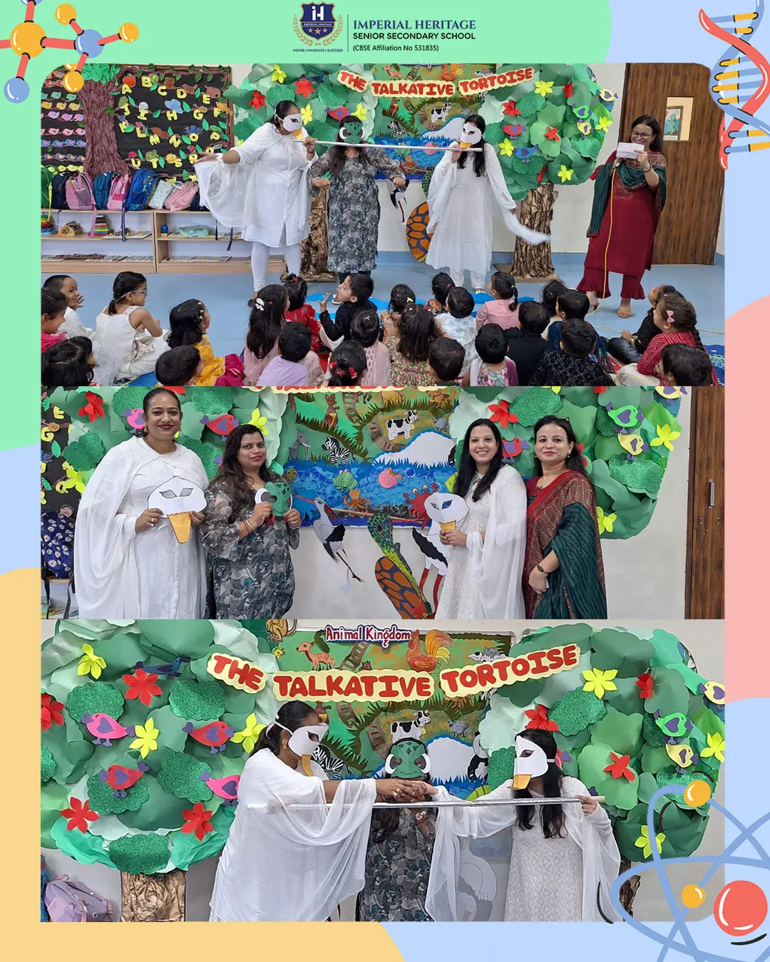 Next up, teachers turned storytellers with the moral tale “The Talkative Tortoise”. Colorful props, funny voices, and animated expressions made the story come alive – the room was full of giggles and wide-eyed wonder.