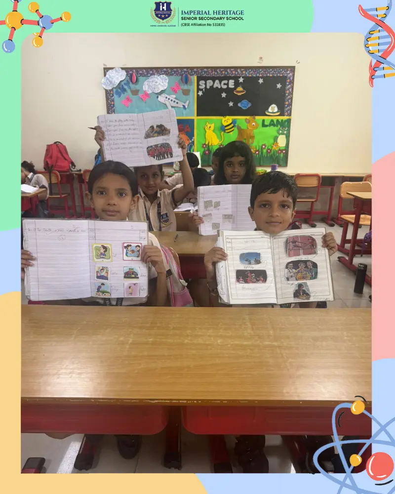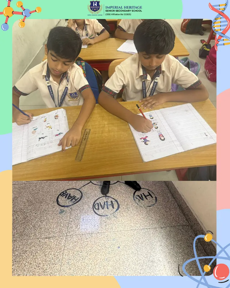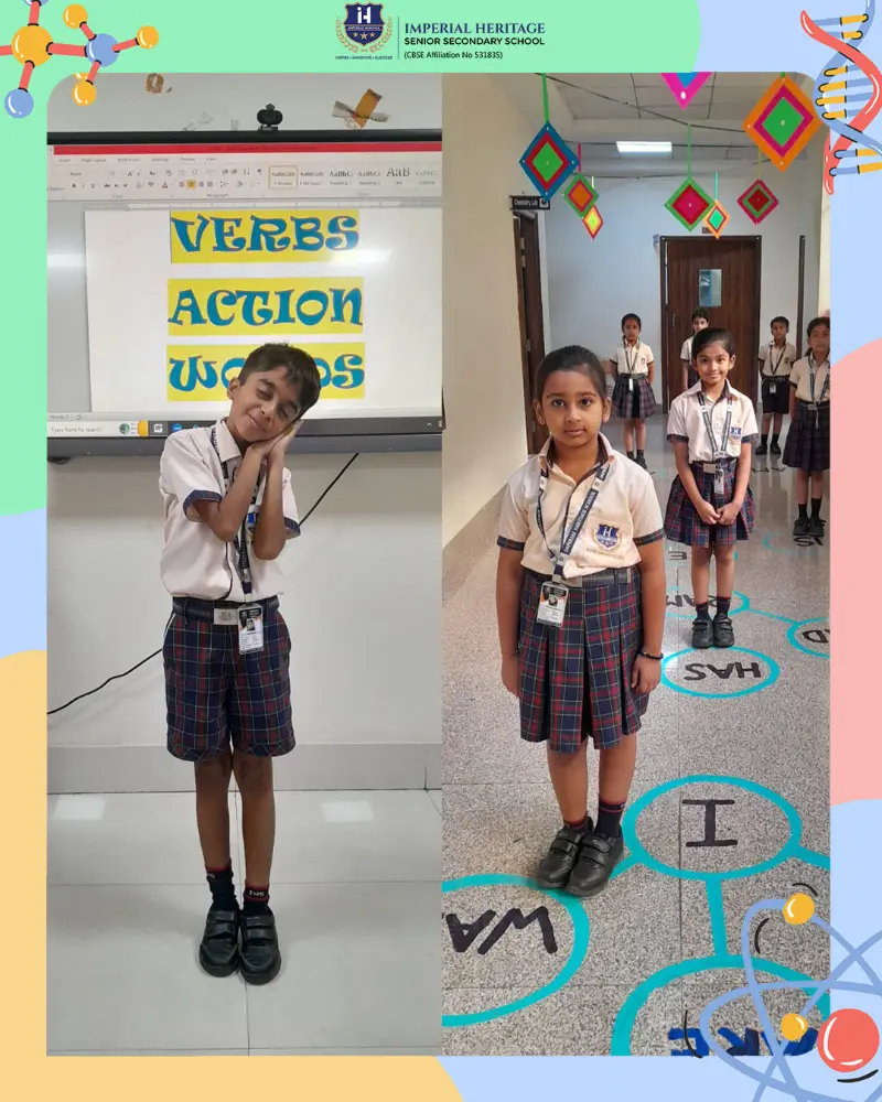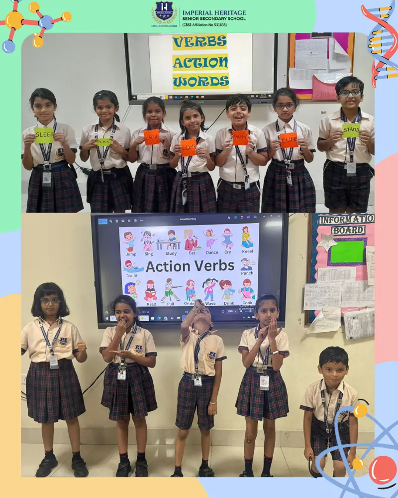 Students were introduced to the chapter on “Verbs” as action words through a series of engaging and hands-on activities. They enthusiastically cut out action words from newspapers and magazines and pasted them in their notebooks. To strengthen their understanding, they also matched nouns and pronouns with appropriate verbs such as is, am, are, was, were, has, have, and had. Adding an element of fun, students enacted various action words picked from chits, bringing the concept to life. These interactive exercises made learning verbs enjoyable, clear, and memorable.