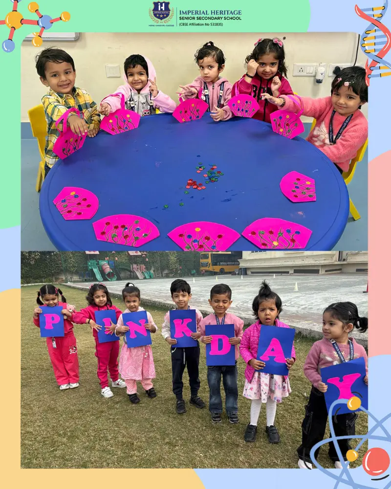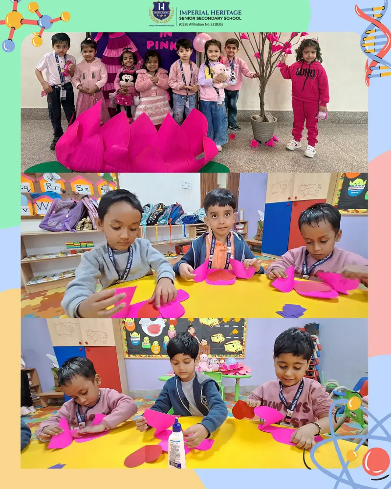 Through these fun-filled experiences, children not only learned to identify and appreciate the colour pink but also enhanced their fine motor skills, hand-eye coordination, and creativity. The vibrant activities made learning truly joyful, painting the day in hues of happiness and imagination!