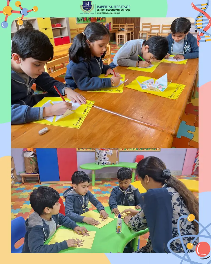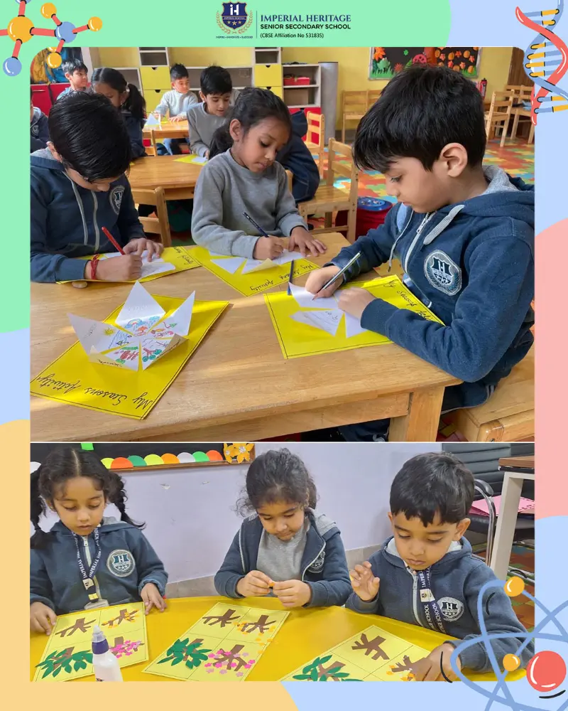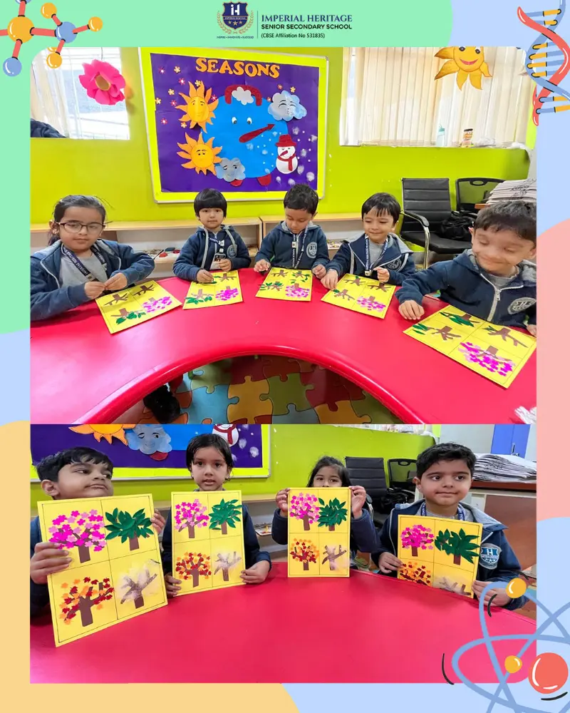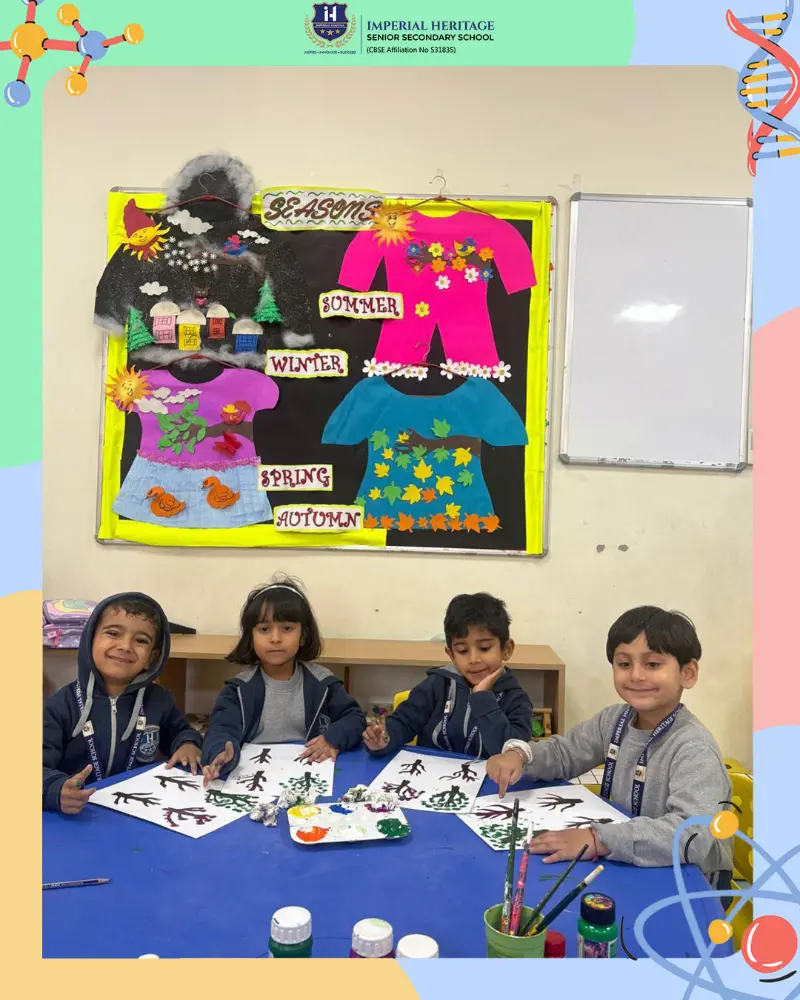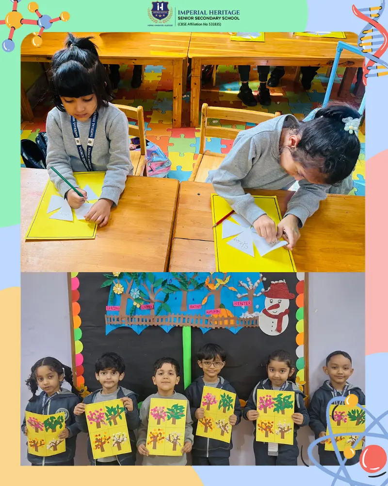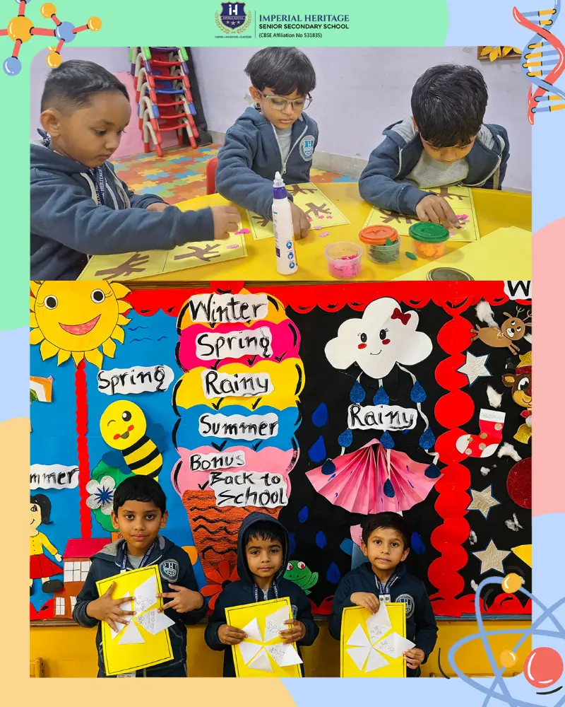 Our Pre-Primary children at IHS enjoyed a month-long, theme-based Season Craft activity as they explored and learned about the different seasons in a creative and hands-on way. The Nursery children painted the four seasons using colourful thumb impressions, beautifully capturing the essence of seasonal changes. The LKG children created vibrant crafts by pasting colourful cutouts, participating with great enthusiasm. The UKG class designed an impressive Season Wheel depicting five seasons, carefully drawing and colouring each section with creativity and pride. This theme-based craft activity not only strengthened their understanding of seasons but also brought out the imagination, excitement, and artistic expression of all our young learners at IHS.