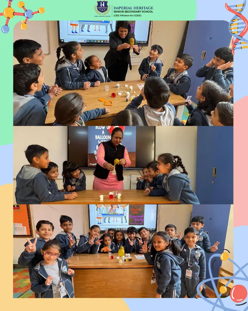 UKG students stepped into the world of science with exciting experiments—watching bubbly volcano eruptions and observing balloons inflate through simple chemical reactions