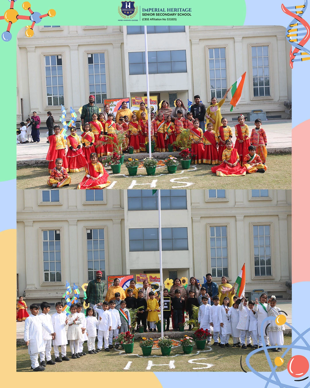 At IHS, our Grade I students came together for a vibrant and meaningful special assembly celebrating the spirit of Republic Day and the grace of Vasant Panchami. The morning unfolded with the unfurling of the national flag, soulful patriotic songs, and a thoughtful skit that beautifully highlighted the importance of the Indian Constitution, along with our rights and duties as responsible citizens.