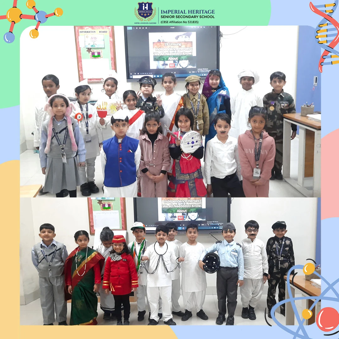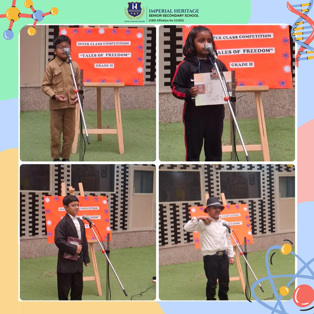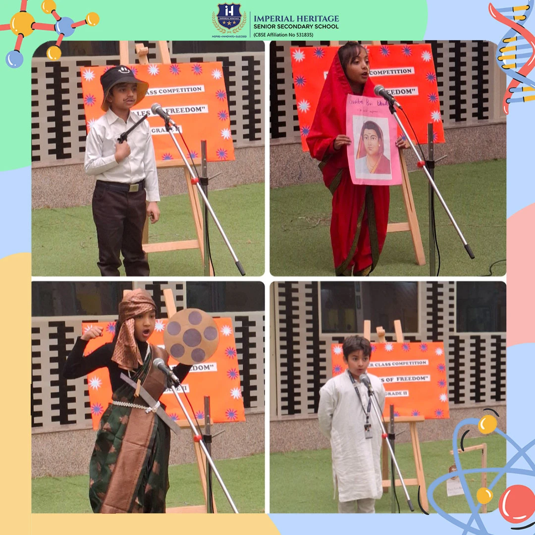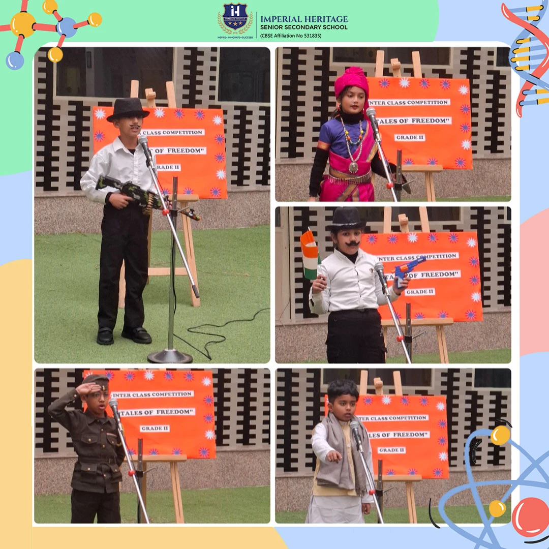 The patriotic journey at IHS began with an Intra-Class Competition on 27th January, where Grade II students dressed as freedom fighters and spoke about their bravery and sacrifices using creative props. The winners from each section then competed in the Inter-Class round on 28th January across Grades II-A, B, and C, showcasing confidence, clear speech, and expressive performances.