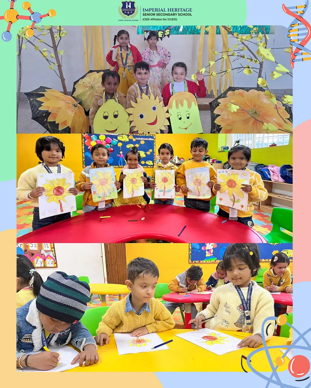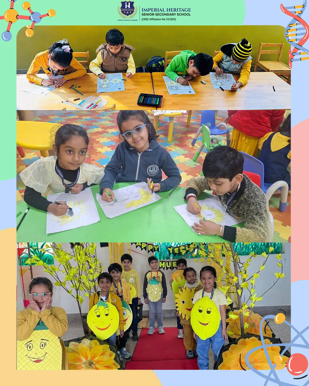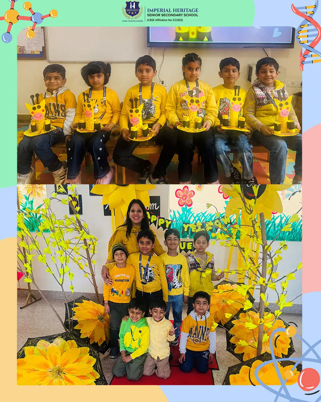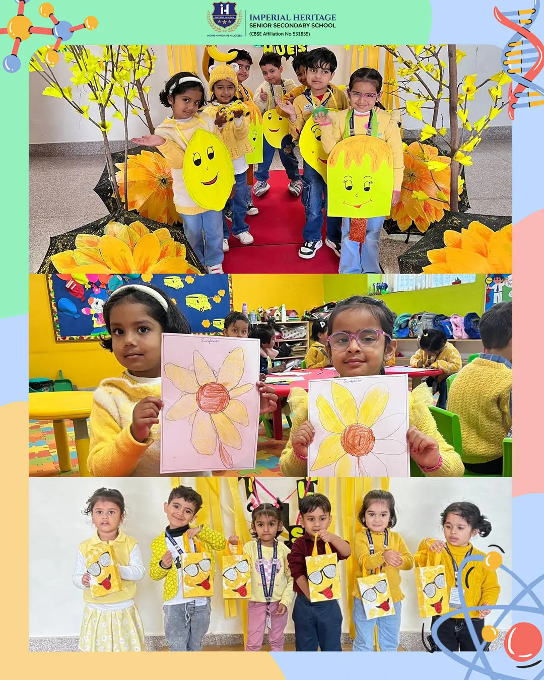 Sunshine, smiles, and lots of yellow hues filled the campus as our Pre-Primary wing celebrated Yellow Day with great excitement! The school bloomed with bright yellow décor and a cheerful sun theme, creating a warm and happy vibe all around.