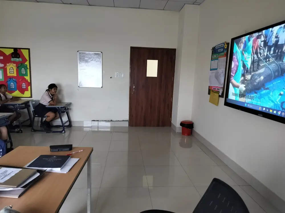 As part of the activity, students created colorful posters and slogans about dolphin conservation. These were displayed in the school corridor to encourage more students and visitors to learn about Project Dolphin. We watched videos showing the dolphin’s habitat, their behavior, and the threats they face, such as pollution and habitat loss. Protect Dolphin pledge was taken in the assembly where they pledge to save dolphin.
