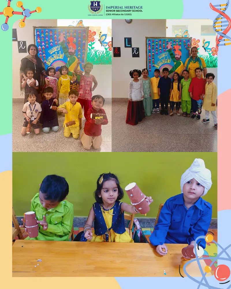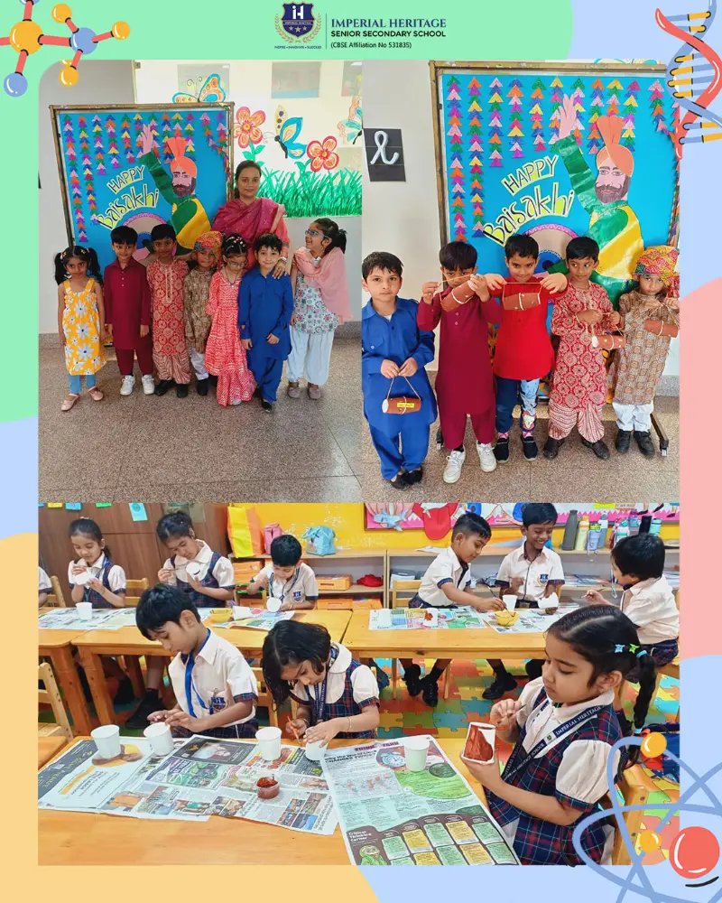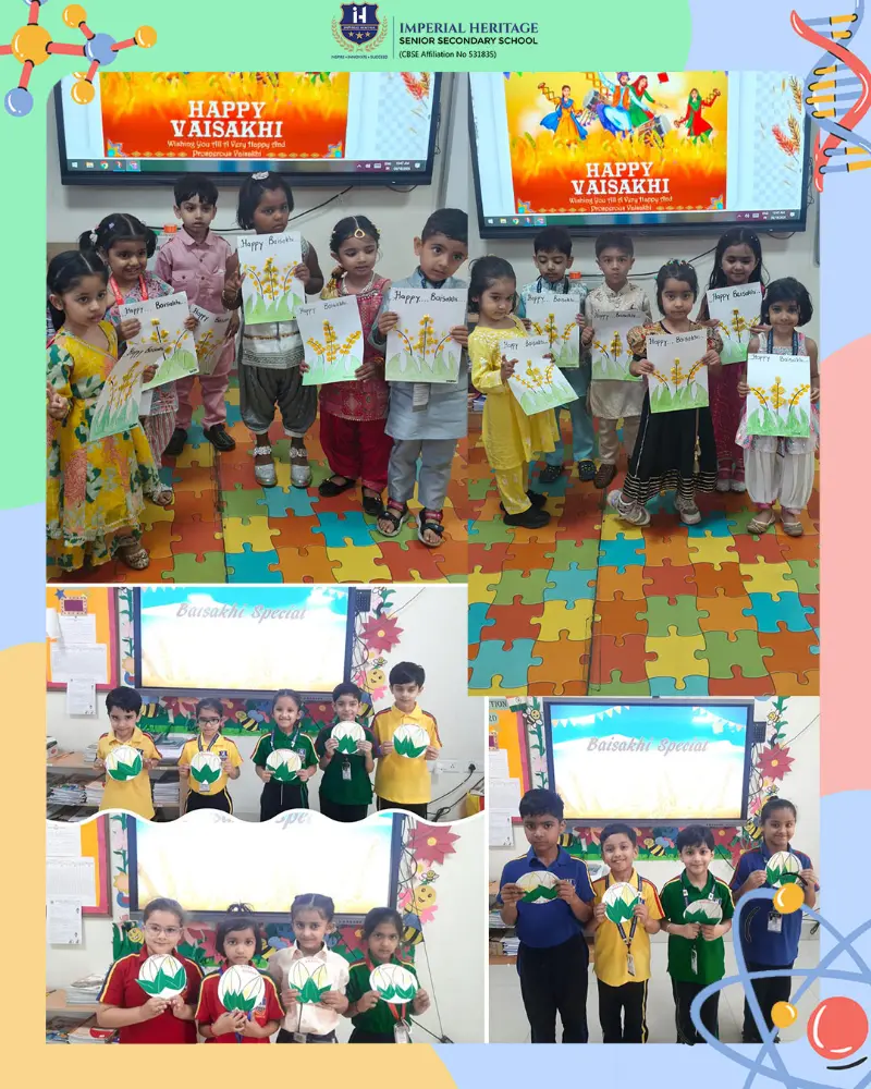 At IHS, Baisakhi was celebrated with vibrant energy, creativity, and joyful participation. Our Nursery children explored their creativity by making colourful pankha crafts, decorating them with mirrors and flowers, and enjoying lively Punjabi dance. The LKG students added a touch of harvest spirit by creating green grass crafts and bright yellow thumbprint wheat art, followed by cheerful dance performances. Our UKG learners, dressed in festive attire, enthusiastically took part in storytelling and dance, and crafted their own dhols by painting and decorating thermocol glasses.