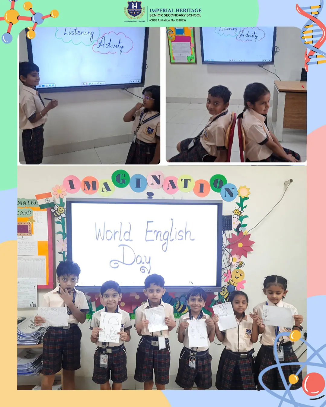 The excitement continued with interactive listening and drawing activities, where students worked in pairs—one describing while the other illustrated—beautifully bringing ideas to life.